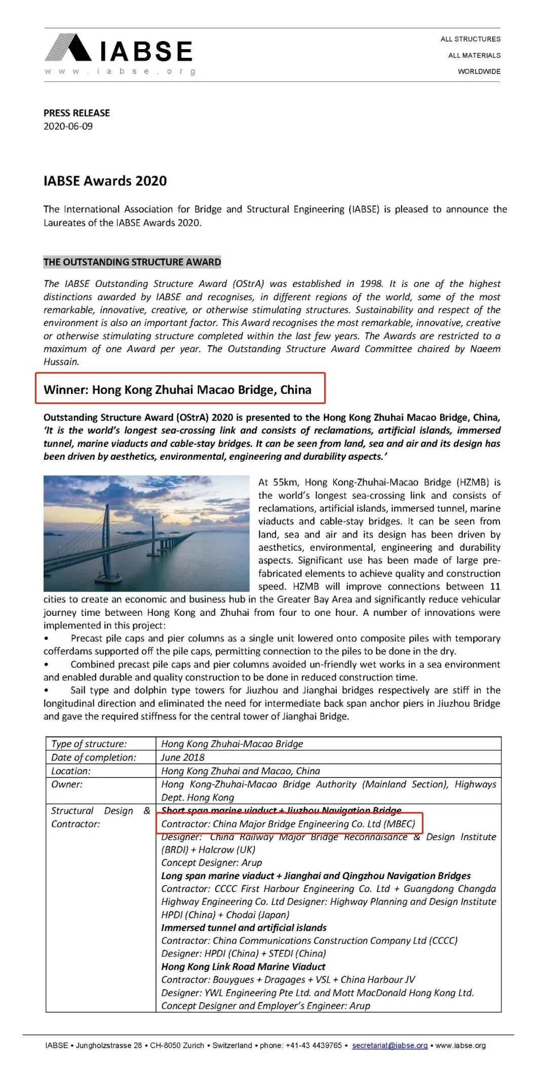 近日,國際橋梁與結構工程協(xié)會(IABSE)公布了入圍及獲得2020年IABSE杰出結構大獎的橋梁,中國船舶武船集團武船重工股份參建的港珠澳大橋榜上有名,榮獲2020年IABSE杰出結構大獎(OStrA)。“IABSE杰出結構獎”是國際橋梁工程界公認的最高獎項,專門授予全世界最具創(chuàng)新性的橋梁和建筑結構。