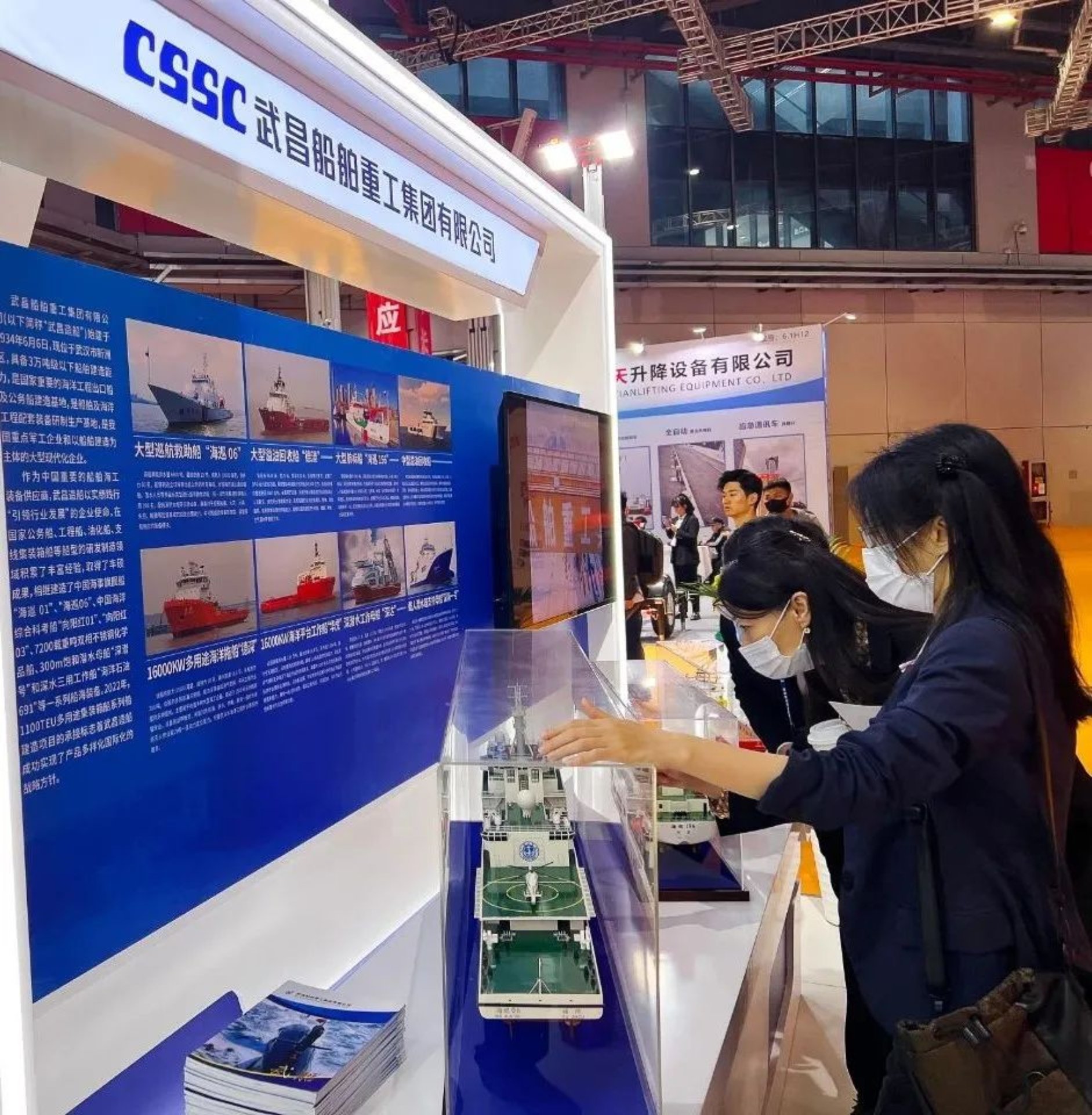 蒞臨展會(huì)現(xiàn)場的有政府、船東、中國船舶等單位領(lǐng)導(dǎo),以及其他國內(nèi)外專家學(xué)者和行業(yè)人士。中國船舶集團(tuán)武昌造船作為大型現(xiàn)代化造船企業(yè)和核心軍工企業(yè),攜大型巡航救助船“海巡06”、大型溢油回收船“德澋”、大型航標(biāo)船“海巡156”等,共8項(xiàng)產(chǎn)品精彩亮相本次博覽會(huì),吸引不少來賓的注意。本次博覽會(huì)活動(dòng)是一個(gè)展示企業(yè)自身實(shí)力、拓展合作空間和促進(jìn)行業(yè)發(fā)展的良機(jī)。武昌造船將繼續(xù)發(fā)揮自身的創(chuàng)新能力和團(tuán)隊(duì)合作精神,為推動(dòng)中國應(yīng)急減災(zāi)事業(yè)的發(fā)展貢獻(xiàn)力量。