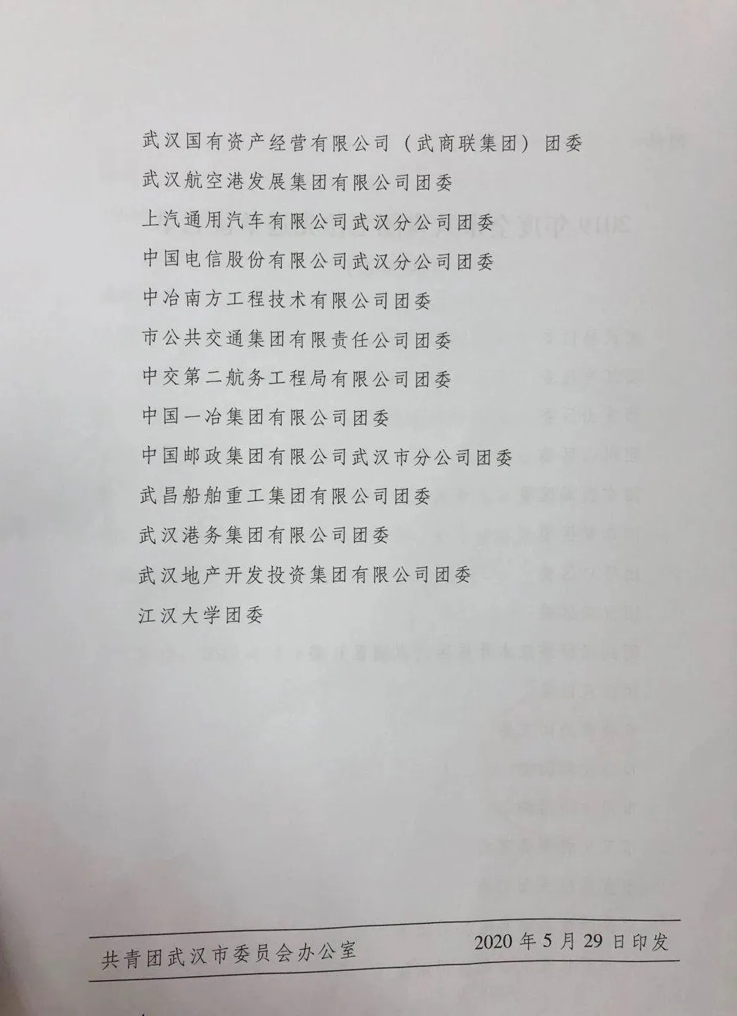 武船集團團委被授予2019年度武漢市共青團工作先進單位榮譽稱號。
