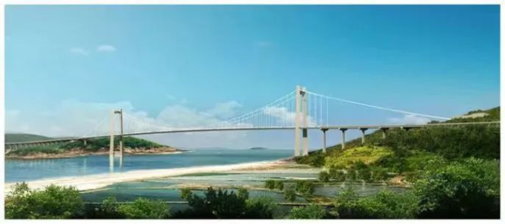 乳山口大橋位于山東省威海乳山市,是最新國道規劃的重要控制性工程,也是威海市公路主骨架“八縱、六橫、一環”中一環的主要組成部分。項目路線全長4.01公里,其中主橋為主跨666m雙塔三跨懸索橋,跨徑布置為193+666+51.4m。設計標準一級公路(主干線),雙向四車道,設計時速80km/h。
