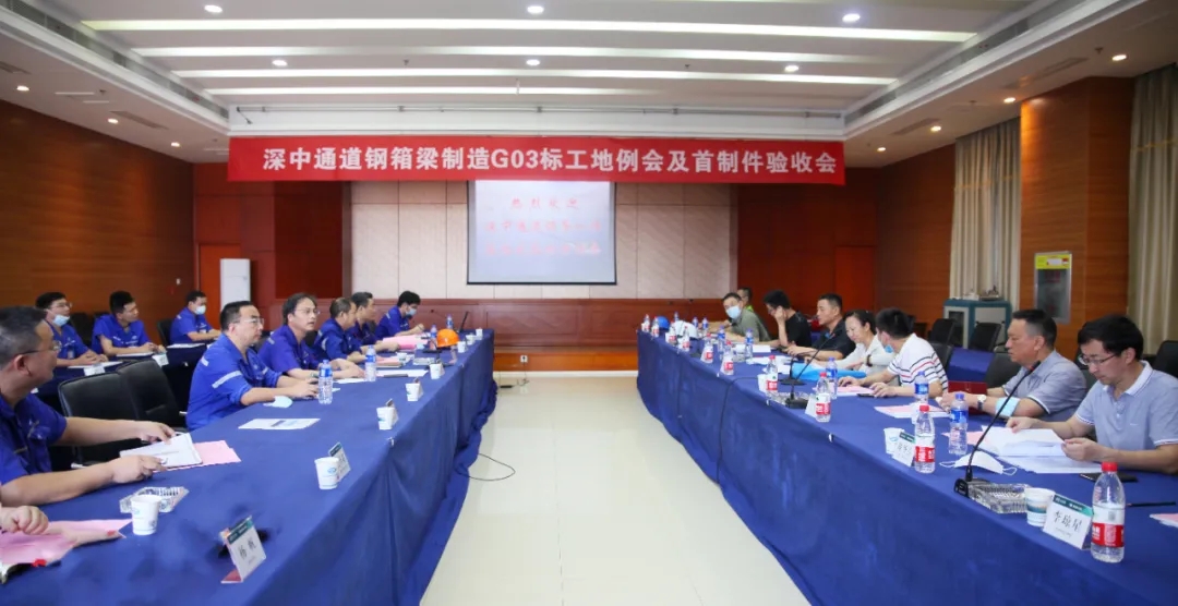 ▲深中通道鋼箱梁制造項(xiàng)目G03標(biāo)工地例會(huì)暨首制件驗(yàn)收會(huì)