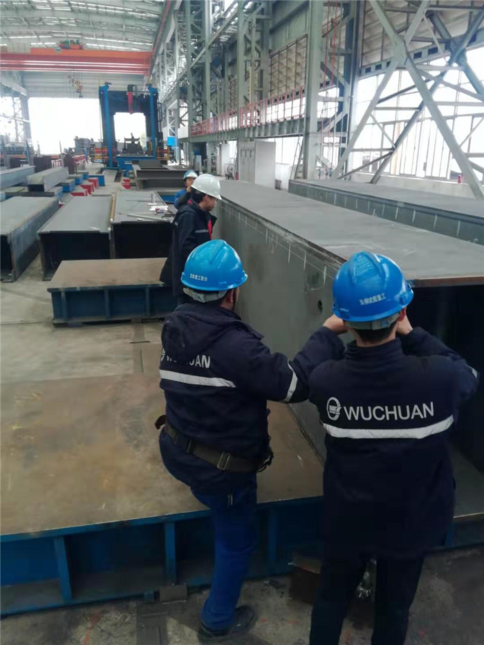 為滿足道慶洲大橋各類型桿件制造任務,年前,公司將四聯跨、六聯跨場地的策劃、工位布局等一一落實到位,對首輪(第三聯次)各工序零部件擺放區域進行固化,確保后期施工的連續性。目前,工字型、箱型桿件首制件均裝焊完成并通過驗收。H型組立機、箱型組立機工位已形成流水線作業,先后裝焊完成拼板面、底、腹180余件,板單元裝焊130件,工鋼腹桿20件,箱型腹桿32件。