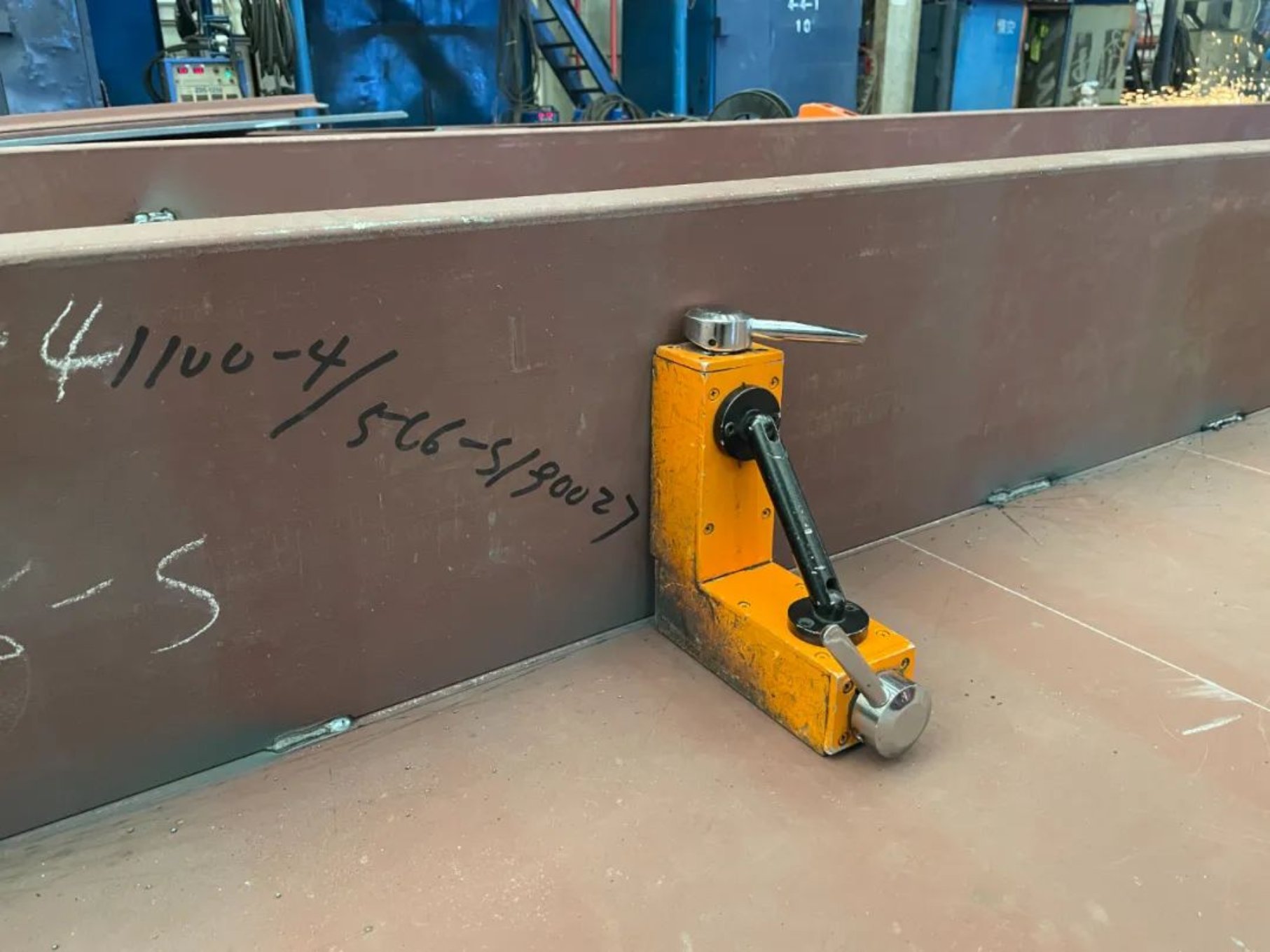 無碼工裝的使用,一直是提高配質(zhì)量和生產(chǎn)效率的有效手段。分段部通過磁力壓碼、磁力頂碼的使用,利用磁力支架,方便對甲板型材、T型材等結(jié)構(gòu)垂直度進行調(diào)整,實現(xiàn)拼板、甲板型材、T型材等結(jié)構(gòu)的無碼裝配,節(jié)省了后續(xù)割、補、磨等無效工時,同時避免外板點焊及過度打磨留下弧坑,有效提升分段外板和整船船體外觀質(zhì)量。