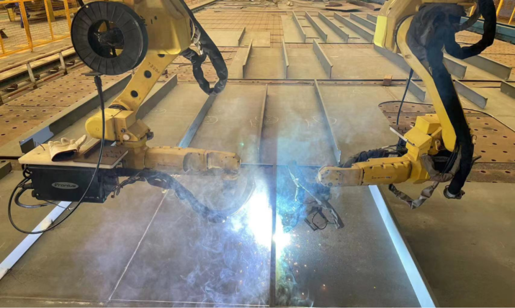 分段部還充分發(fā)揮了多頭焊機、焊接機器人和高速劃線機等先進設(shè)備的優(yōu)勢。其中,橋梁生產(chǎn)線多頭焊機在民船產(chǎn)品分段平面板架上的應(yīng)用尚屬首次,該設(shè)備的成功應(yīng)用使4根結(jié)構(gòu)角焊縫焊接可以“一步到位”,焊接效率提升300%,且板架完工平整度和焊接質(zhì)量也得到顯著提升。