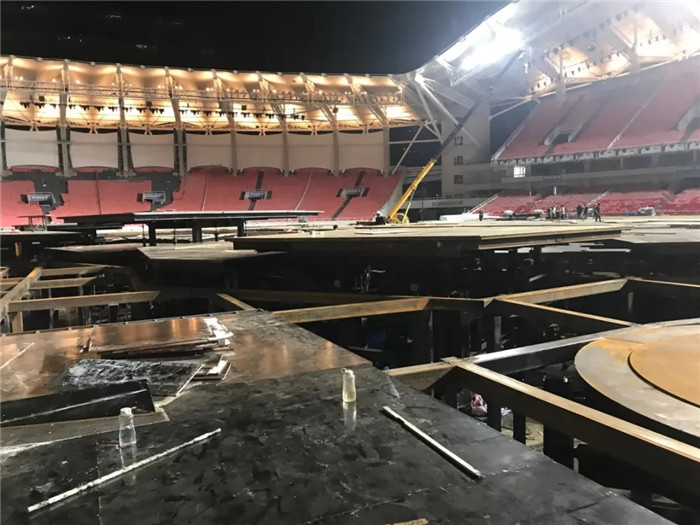 但在實際施工過程中,武船的項目團隊需要考慮并兼顧美工、演出等其他團隊,如果先做水區臺面,那么后期美工團隊將無法按計劃準時完成干區大面積舞臺的美化工作,一些大場面的演出團隊也無法進行多次預演來保證開幕式的“零差錯”。