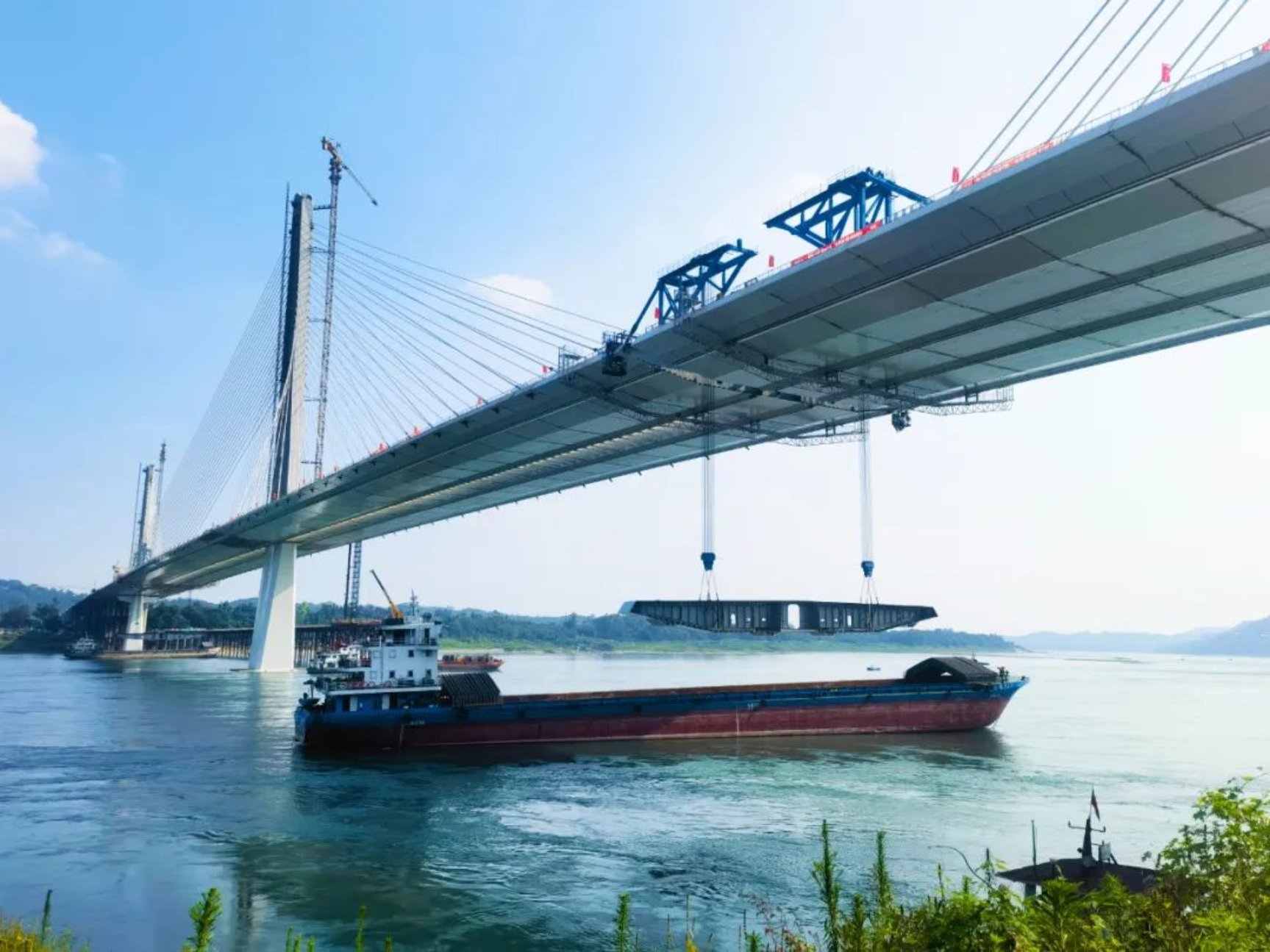 6月26日,由中國船舶集團武昌造船重裝公司承建的瀘州長江六橋成功合龍,瀘州長江六橋是目前世界上在建最大公軌兩用三塔鋼箱梁斜拉橋,也是瀘州市重要的過江通道,當地人民翹首以盼的民生工程。