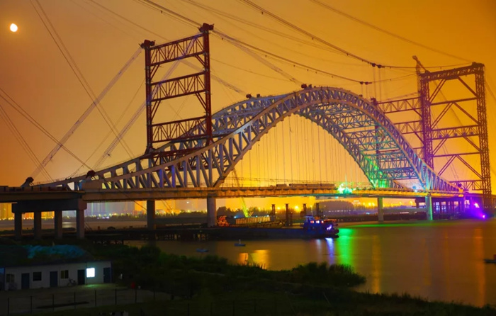 蘇嶺山大橋主拱在6月28日合龍后,武船重工股份項(xiàng)目部迅速啟動(dòng)了主梁吊裝的工作,繼續(xù)發(fā)揮項(xiàng)目臨時(shí)黨支部的作用,迎難而上,先后克服了主梁安裝與臨時(shí)水平系桿安裝、吊桿安裝在高空交叉作業(yè)、體系轉(zhuǎn)換施工技術(shù)難度極大、因環(huán)保要求白天焊、割、刨作業(yè)被限制等重重困難,合理優(yōu)化吊裝工藝、工序,組織開展了多項(xiàng)勞動(dòng)競(jìng)賽,將原來(lái)每個(gè)主梁節(jié)段吊裝時(shí)間從9小時(shí)優(yōu)化到了6小時(shí),從一天一吊優(yōu)化到一天兩吊。在主橋合龍沖刺階段,武船重工股份后場(chǎng)梁段及時(shí)供應(yīng),同時(shí)加派施工人員連續(xù)作業(yè),確保了最終合龍節(jié)點(diǎn)。