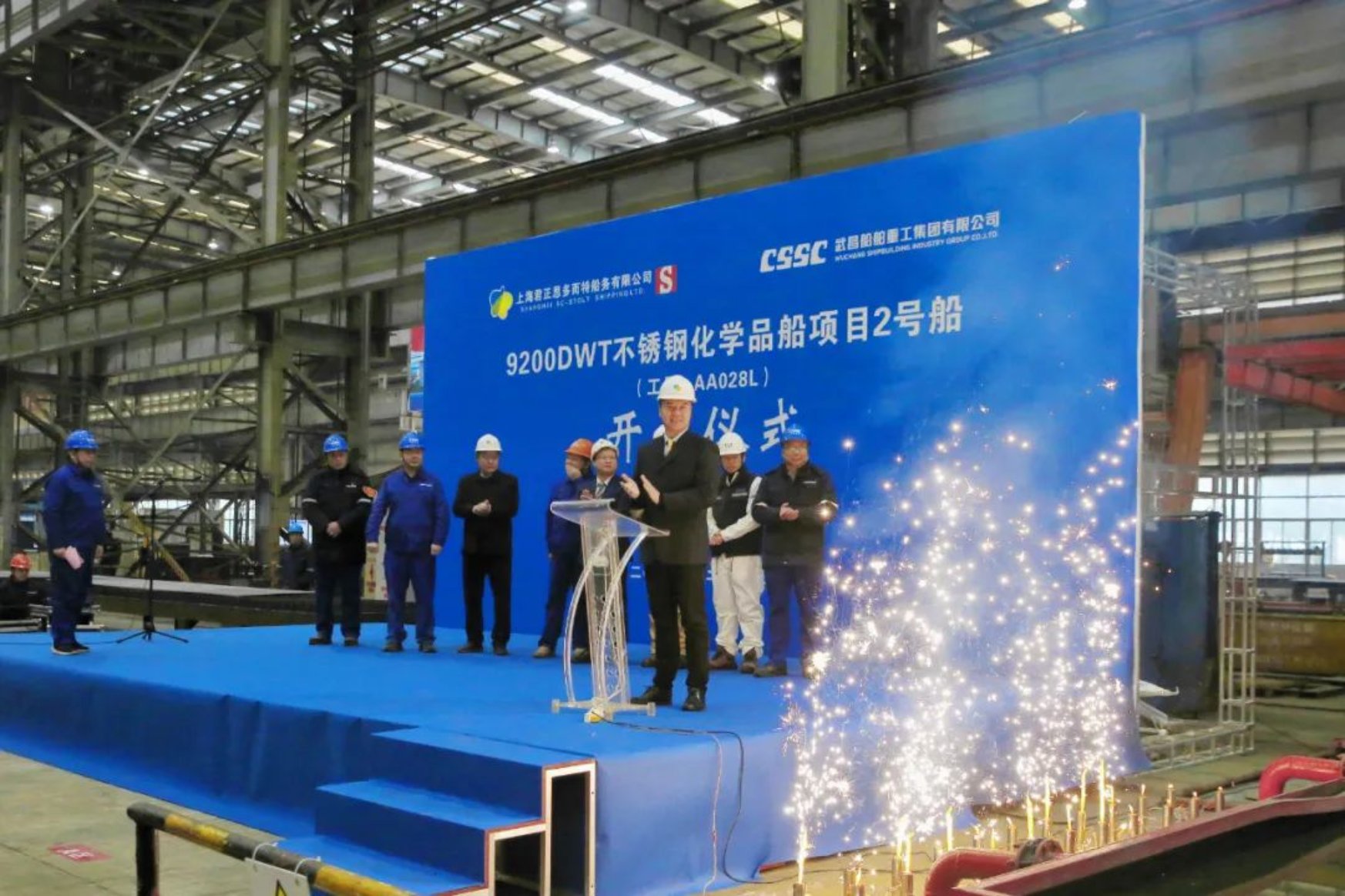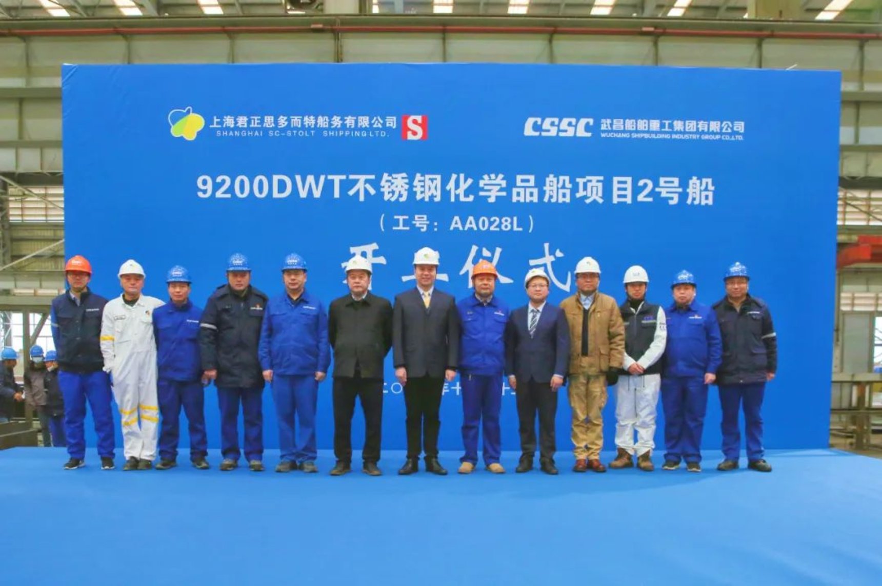 12月15日10時18分,由中國船舶集團武昌造船為上海君正思多而特船務有限公司建造的9200DWT不銹鋼化學品船2號船正式開工!