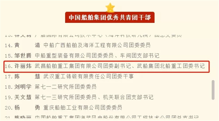 “中國船舶集團優秀共青團干部”榮譽稱號