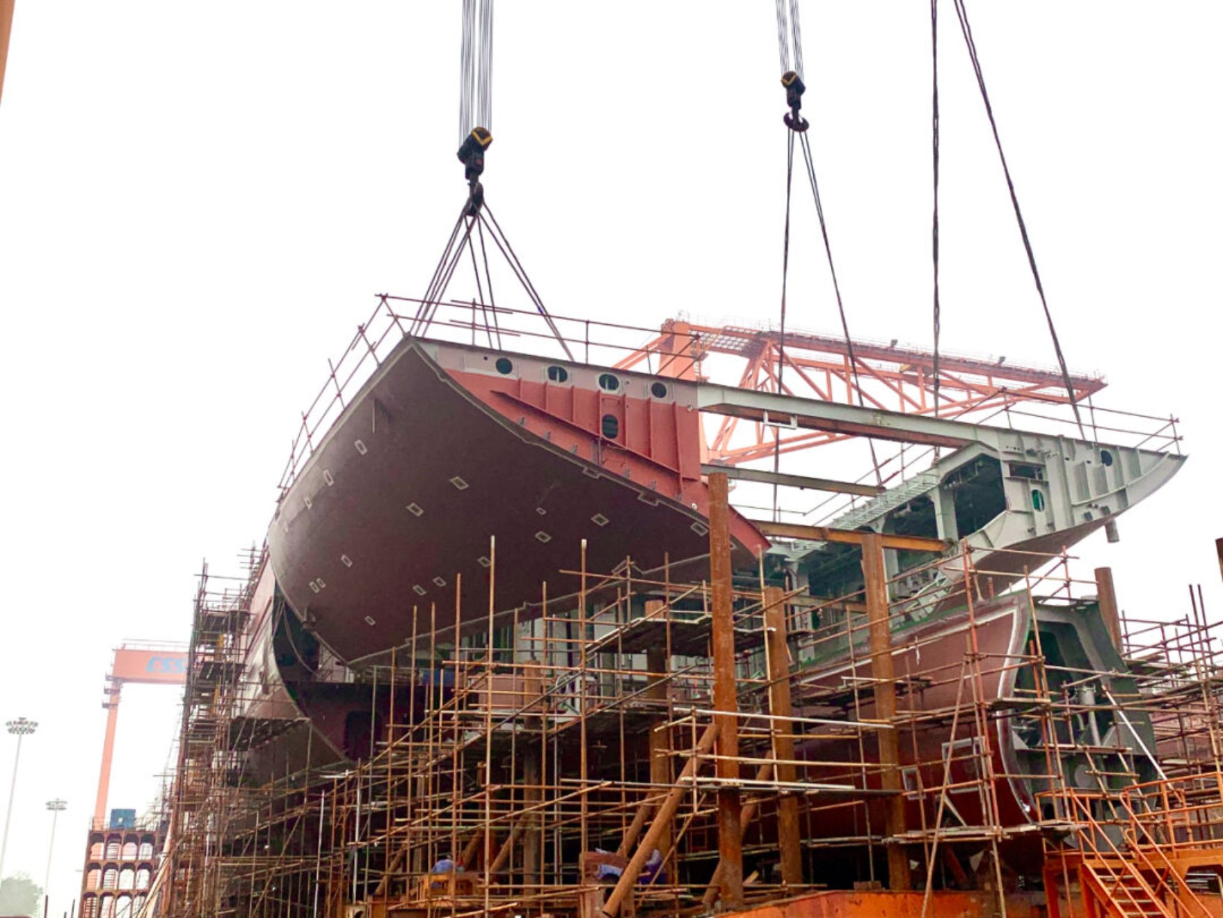 目前,該船分段建造工作已完成,一級總組已完成,二級總組按生產進度有序推進,艙室密試、艉部軸舵系施工等船臺階段任務已提前開展,具備上船臺后連續(xù)搭載和關鍵項目施工條件。后續(xù)項目組將繼續(xù)以高標準、高質量組織好建造工作,錨定船舶下水目標不放松,確保該船按節(jié)點順利下水。