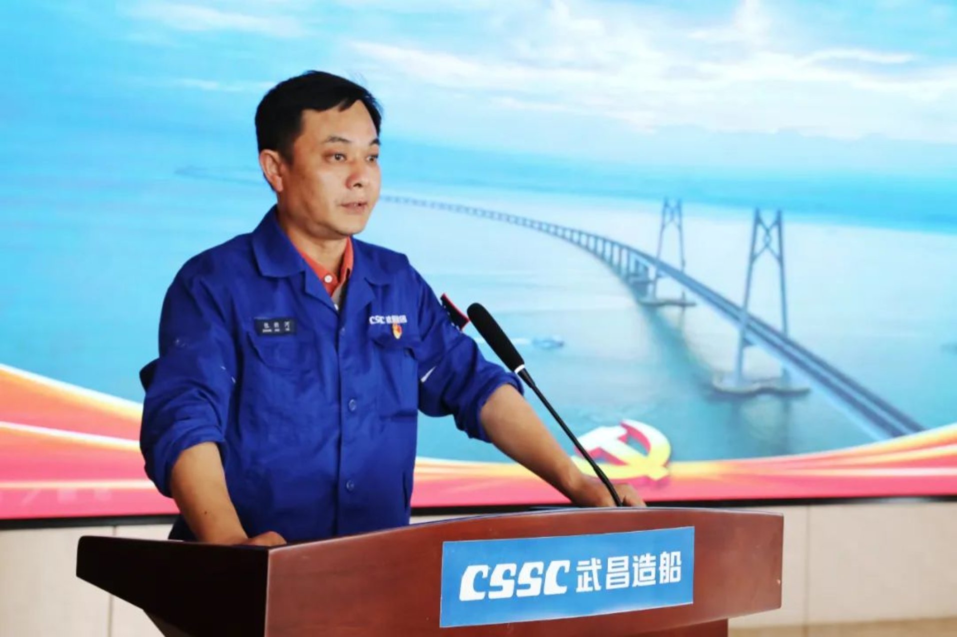 第三位登上宣講臺(tái)的是“荊楚工匠”、“武漢市勞動(dòng)模范”獲得者,重裝公司周永和。他為大家講述了從武船技校起重專業(yè)畢業(yè)進(jìn)廠25年的工作經(jīng)歷,從學(xué)徒到班組長(zhǎng),從初級(jí)工到“大國(guó)工匠”,從FAST天眼到軍運(yùn)會(huì)舞臺(tái)設(shè)備,周永和用精湛的操作水平,成為 2016 年央視紀(jì)錄片“大巧破難”中的大國(guó)工匠,展現(xiàn)出他執(zhí)著、專注、踏實(shí)、嚴(yán)謹(jǐn)、敬業(yè)、創(chuàng)新、精益求精的精神。