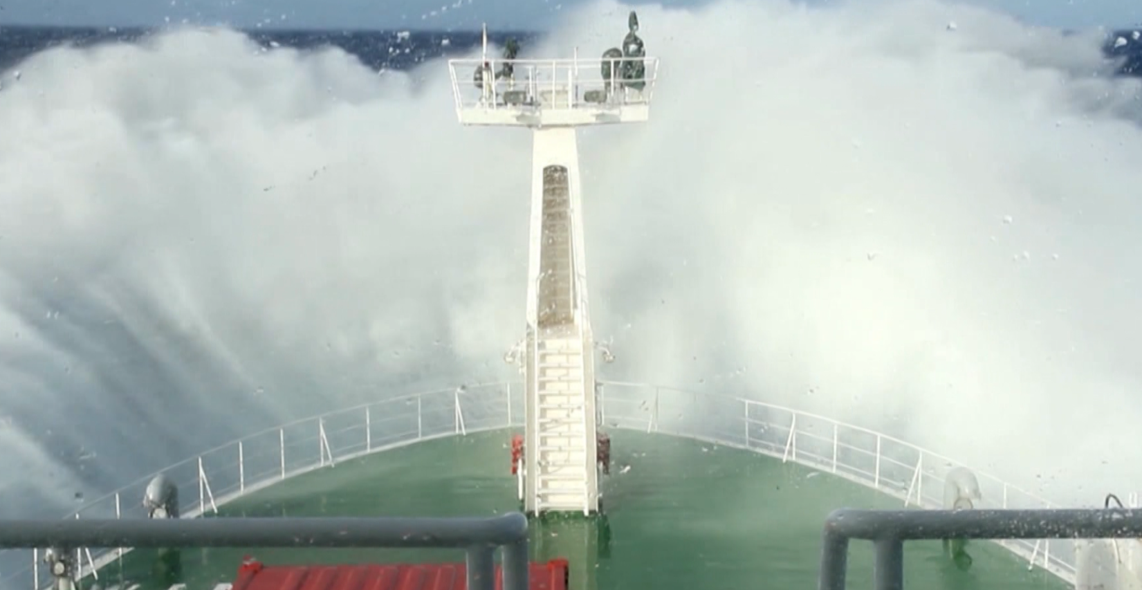 “科學(xué)”號在大風(fēng)浪中穩(wěn)定航行