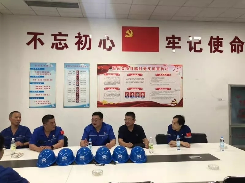 在項目部和施工現場詳細詢問項目進展情況后,楊少稀強調,軍運會項目作為勞動競賽重點項目,要充分發揮黨建引領作用,項目部和參建人員政治站位要高,明確責任、嚴格管理,確保安全、確保質量、確保周期,做到萬無一失,為武漢人民建設一流工程,向武漢人民交一份滿意答卷。