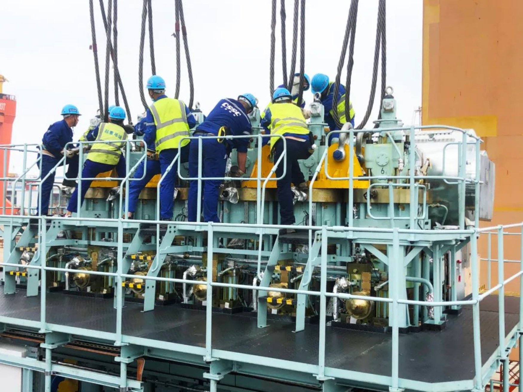 面對船臺周期時間緊,任務重的挑戰,項目組與各參建單位緊密協作,時刻牢記年度交付承諾,上下統一思想,主動擔起責任,嚴格按照生產計劃推進項目進度,特別是在建造過程中大力推行一級總組、二級總組及船臺搭載同步平行施工,不斷提升船舶舾裝完整性和建造效率,縮短船臺建造周期。截至目前,該船69個艙室已密試完成26個;全船9100根管系已安裝完成8200根;全船84km電纜已拉敷完成60km;全船上建房間內裝絕緣已施工完,正在進行封板施工。下一步,項目組將重點圍繞舵軸施工、貨油泵安裝、液貨艙不銹鋼接頭焊接和全船管系系統清理等方面開展工作,為船舶實現完整性下水節點全力沖刺。