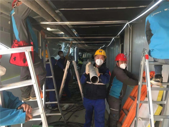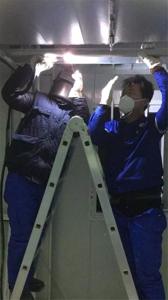 “火神山醫(yī)院每層天花板內部空間小是小了一點,燒焊燒到上面的時候,人進不去,進不去就看不到焊縫。于是,我們就在旁邊支架上,固定一塊小的反光鏡,對著鏡子繼續(xù)燒,這也是我們經(jīng)常會用到的方法。其實,室內施工還算好的,雷神山醫(yī)院頂樓天臺相當于外場施工,聽說施工前一天晚上還下了大雨,可能會比較麻煩一些。”參與火神山建設的龔思帆說道。