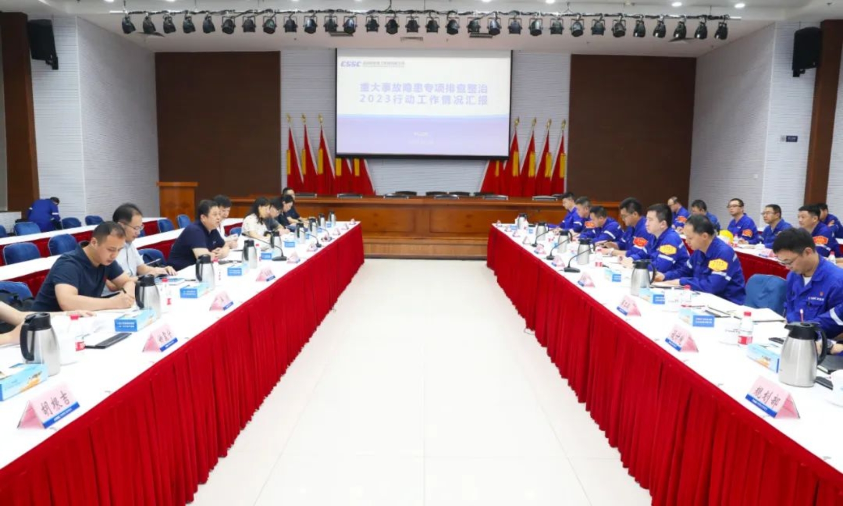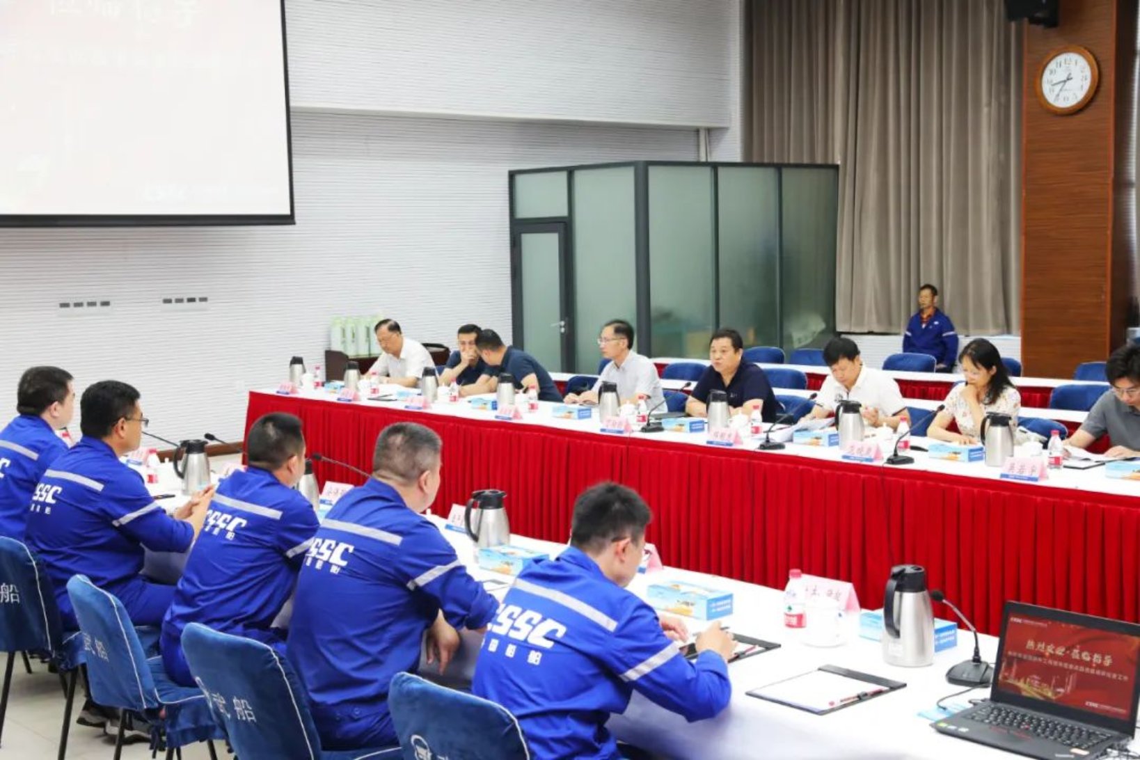 7月13日,國防科工局副司長丁向明一行到中國船舶集團武昌造船調(diào)研檢查安全生產(chǎn)工作,中國船舶集團公司質(zhì)量安環(huán)部有關領導參加調(diào)研檢查工作。公司黨委書記、董事長姜濤,黨委副書記、總經(jīng)理梁師清及相關部門負責人參加調(diào)研檢查。