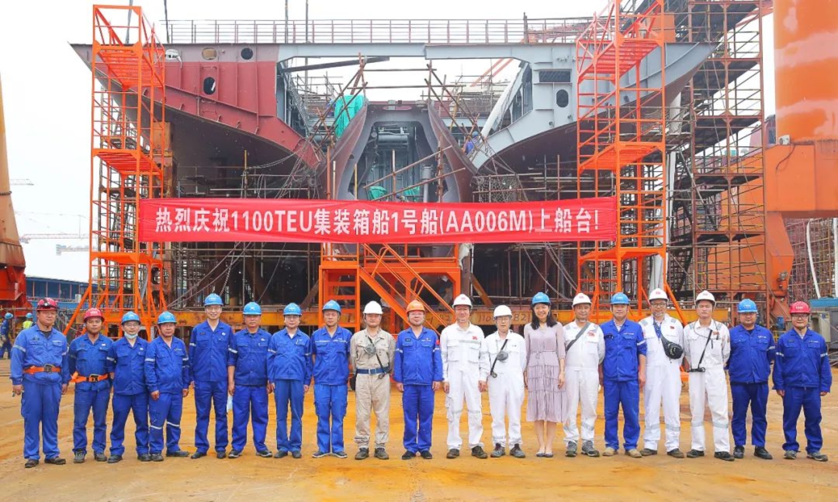 5月16日上午11時(shí)18分,武昌造船為CA Shipping建造的1100TEU集裝箱1號船在雙柳廠區(qū)順利上船臺,在船舶完整性良好的前提下實(shí)現(xiàn)計(jì)劃節(jié)點(diǎn)提前9天完成。