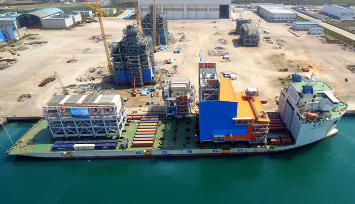 該項目是世界上最大的乙二醇模塊化項目,年生產(chǎn)能力為110萬噸,包含多個核心工藝模塊,最大模塊重量超過8000噸,長50米,寬42米,高52米; 模塊總重近40000噸,將于2018年下半年開工,2020年年底交付。