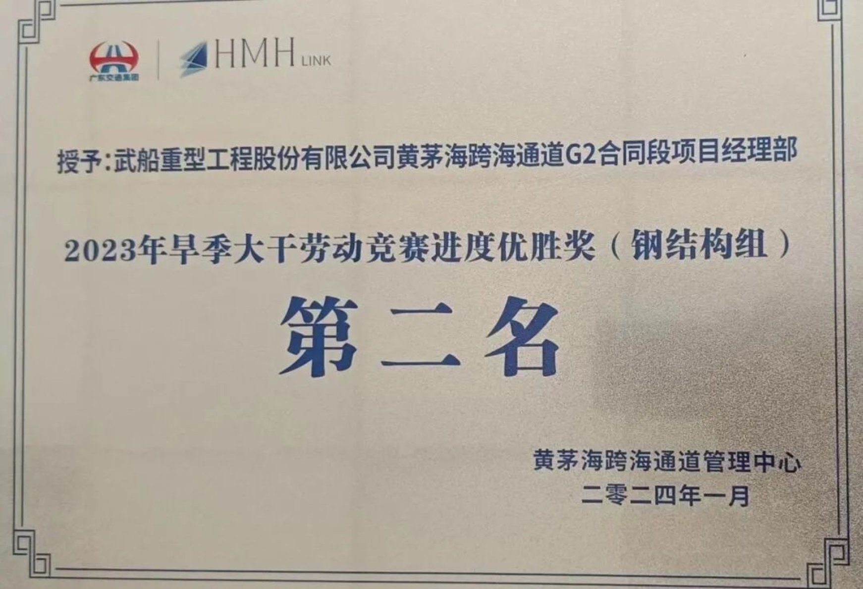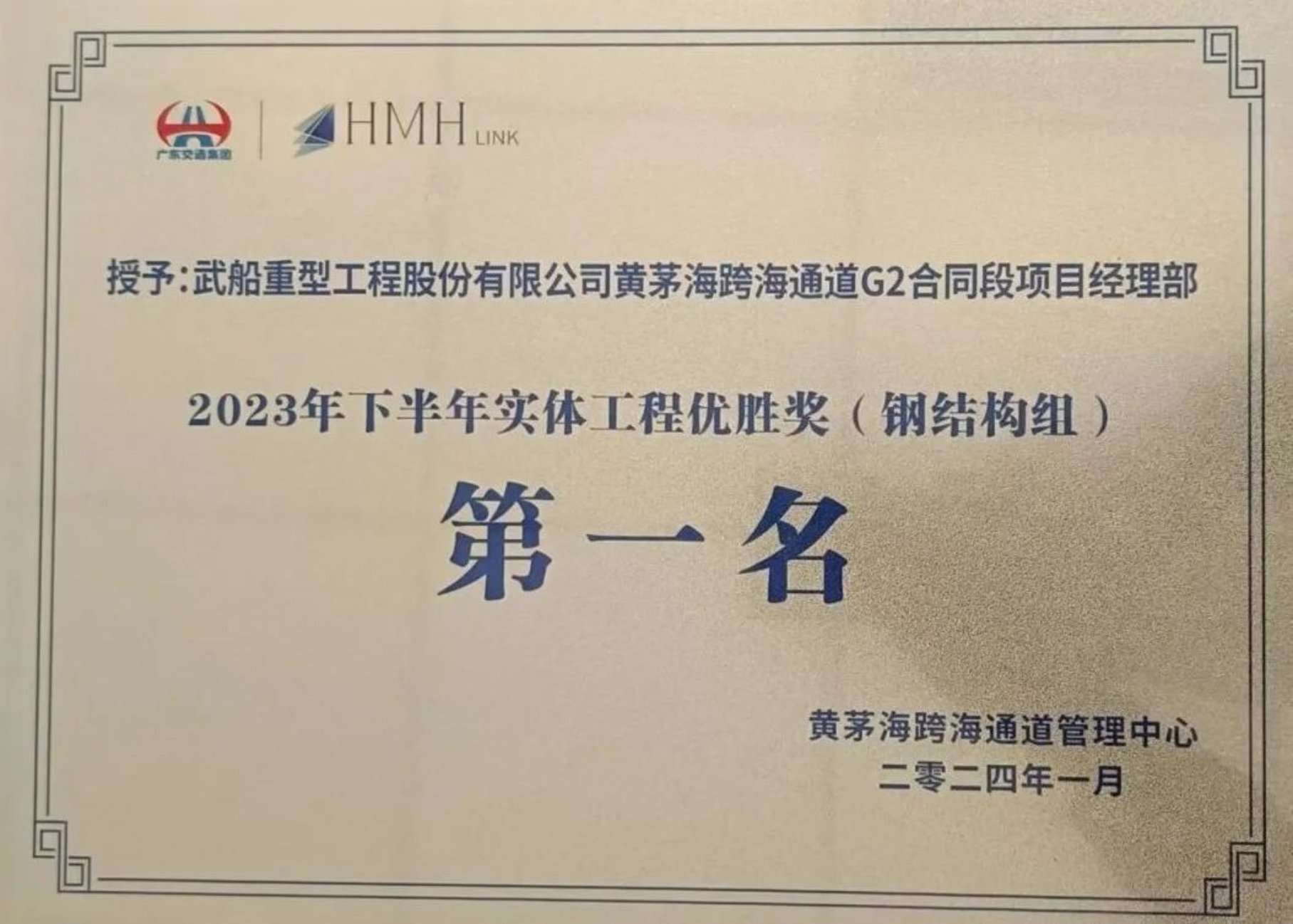 1月31日,從黃茅海跨海通道管理中心傳來喜訊。中國(guó)船舶集團(tuán)武昌造船重工公司黃茅海跨海通道G2合同段項(xiàng)目經(jīng)理部,獲得業(yè)主頒發(fā)的4個(gè)獎(jiǎng)項(xiàng):